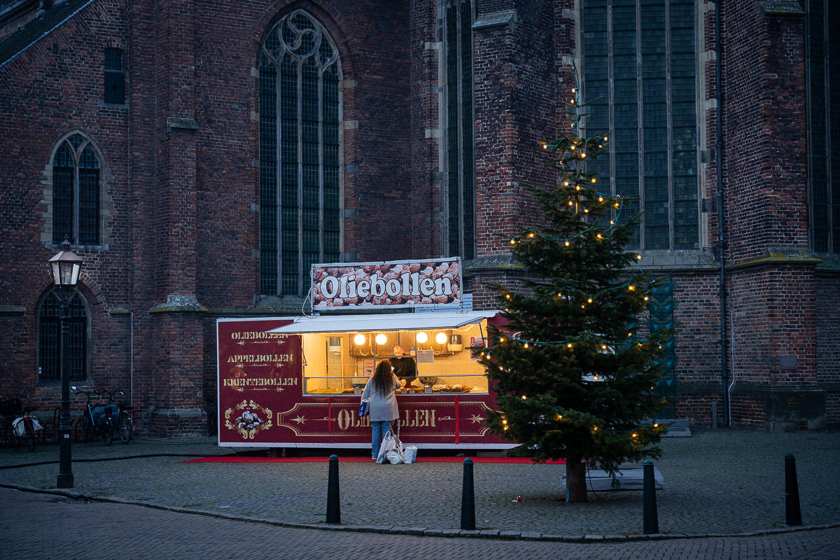 Foto 1 De eerste foto met de Sigma 20-200mm is een feit. Het was saai en somber en het enige licht op straat was deze oliebollenkraam en de kerstboom die op de hoek van de straat stond. Het was wachten op de eerste klant en dankzij het fijne zoombereik legde ik perfect deze scene vast. Sigma 61,5mm. 1/40e sec. f/5,6, ISO 1600 (handheld) (Sigma 20-200mm. F3.5-6.5 DG | Contemporary)